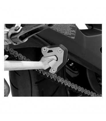 Der Seitenständerfuß erhöht und verbessert die Standfläche und die Stabilität auf unbefestigtem und weichem Untergrund.
