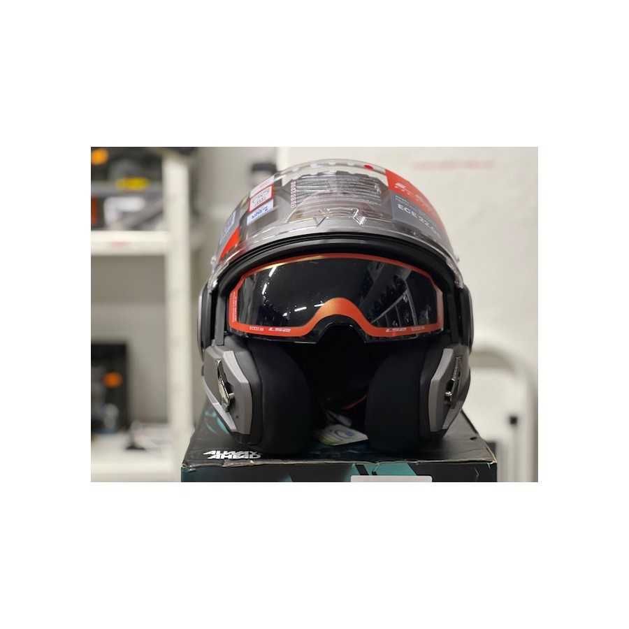 Der FF906 ADVANT ist mit doppelter P / J-Homologation und neuer ECE 22.06-Homologation ausgestattet, daher kann er als Integralhelm und als Jethelm verwendet werden. Aus Sicht der Ausrüstung finden wir den verstärkten Riemen und den mikrometrischen Stahlverschluss, die reflektierenden Einsätze in den unteren Teilen der Polsterung und einen kleinen gepolsterten Platz im Inneren des Helms für die Verwendung einer Sonnenbrille sowie einen "Kinnriemen". " das Außengeräusche reduziert und den Fahrer während der Fahrt vor Wind und Kälte schützt. Der zentrale Lufteinlass und der breite hintere sorgen für einen perfekten Luftstrom im Inneren des Helms, während das äußere Visier mit Anti-Kratz-Behandlung und UVA-Schutz versehen ist, ebenso wie das einziehbare innere Sonnenvisier. Schließlich ist die Innenpolsterung lasergeschnitten, antiallergisch, herausnehmbar und waschbar.