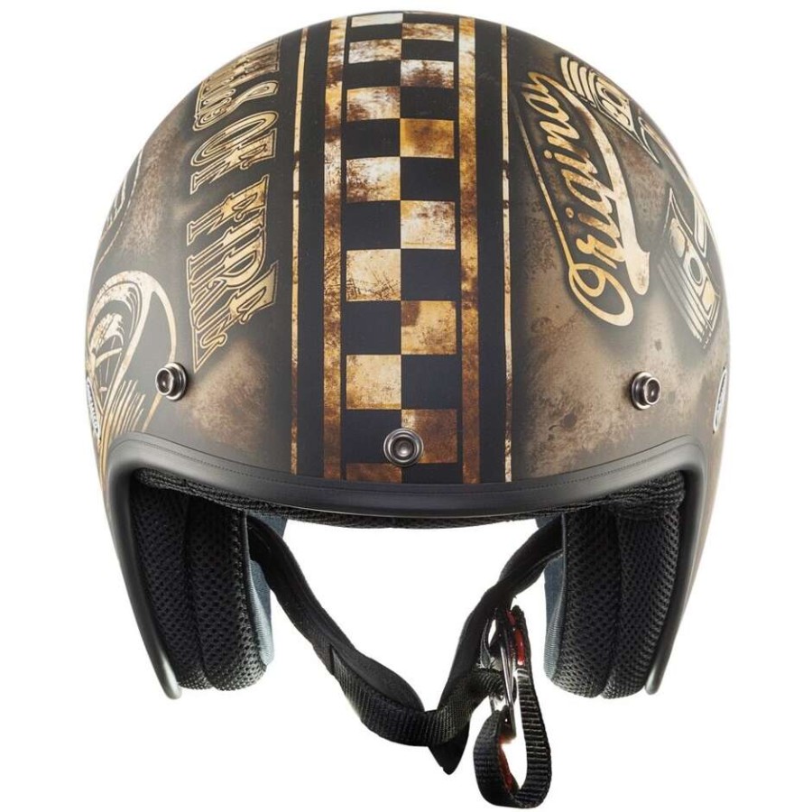 Er ist ein beliebtes Modell, nicht nur weil er praktisch und leicht ist, sondern weil er in jeder Hinsicht den alten Jethelmen der 1960er Jahre nachempfunden ist, auch wenn er unter Berücksichtigung modernster Sicherheitsstandards hergestellt wurde.