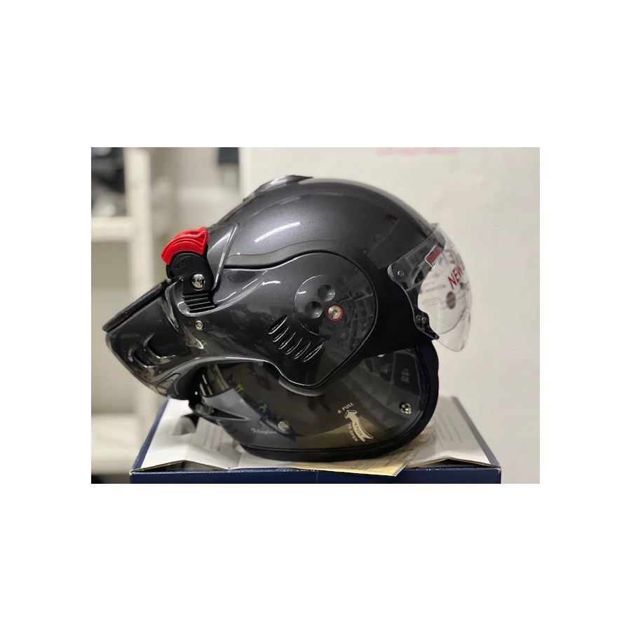 Der Helm ROOF Boxer Alpha, der Kulthelm mit seinen zwei roten Sicherheitsschlössern, ist unter Tausenden von Menschen erkennbar. Seine sehr kompakte Form optimiert sowohl Komfort als auch Sicherheit. Die Glasfaserschale des Boxer-Helms macht ihn besonders stoß- und zeitbeständig. Der ROOF Boxer Alpha ist mit abnehmbaren Schaumstoffen für eine einfache und präzise Installation von Kopfhörern, dem FlexLocker-System und einem kratzfesten und beschlagfreien Crystal-Visier ausgestattet. Das Boxer Alpha-Visier ist mit dem Visier Boxer V8 und Boxer V8S kompatibel. Der Alpha-Helm verfügt über die ECE 22.06 C/J-Zulassung. Egal, ob Sie mit dem Motorradfahren beginnen, es täglich genießen oder den Helm kaufen, in den Sie sich zum ersten Mal auf zwei Rädern verliebt haben, der Boxer Alpha ist für Sie gemacht.