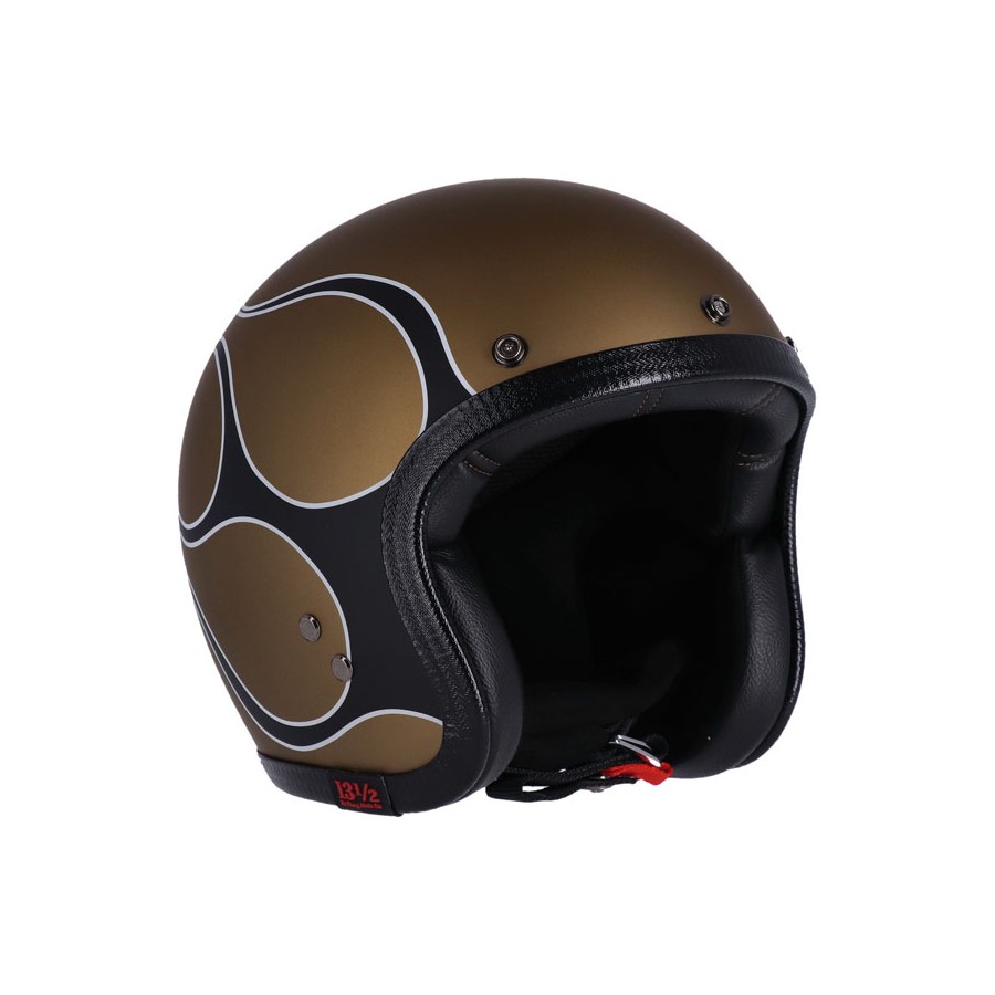 Der beste Weg, auf einem Motorrad sicher zu bleiben, besteht darin, kein Motorrad zu fahren, aber lassen Sie uns diese Option überspringen und uns für einen ECE 22.06-zugelassenen Helm entscheiden, der fantastisch aussieht. Diese 13 ½ Skull-Eimerhelme sind altmodisch cool, mit Vintage-Farben und Grafiken, die zu Ihrem Chopper-Stil passen. Die Eimer bestehen aus Fiberglas in vier verschiedenen Schalen und sind in den Größen Extra Small bis Double XL erhältlich. Komplett mit gepolstertem Kinnriemen und klassischem Doppel-D-Ring-Verschluss sowie integrierten Druckknöpfen für Schilde und Schirme wie beim Scum. Da es sich um einen der kleinsten Helme auf dem Markt handelt, sehen Sie garantiert nicht wie Tweety auf Ihrem Fahrrad aus. Verpassen Sie nicht diese Chance, sich Ihren eigenen 13andhalf Skull Bucket zu sichern und „Get to The Chopper“ zu machen!