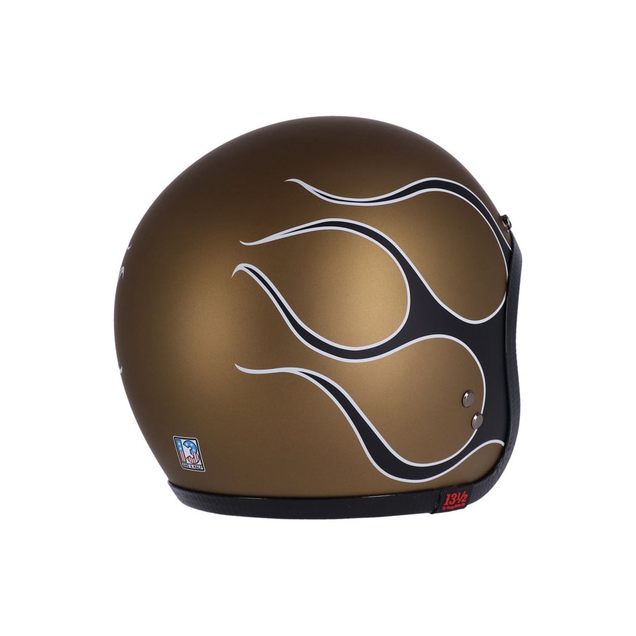 Jet helm 13 1/2 Skull Bucket FLAMES matt GOLD