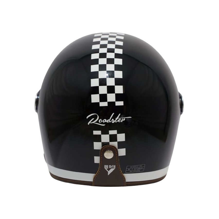 Ier Roadster Helm von By City hat einen klassischen Stil, inspiriert von den Designs der 1970er Jahre, mit einem breiten Sichtfeld und sehr komfortabel. Außenhelm aus Faserverbundwerkstoff mit Multi-Density-Polsterung, Innenausstattung herausnehmbar und waschbar. I l Helm ist ECE-geprüft; ECE / UN R.22.06