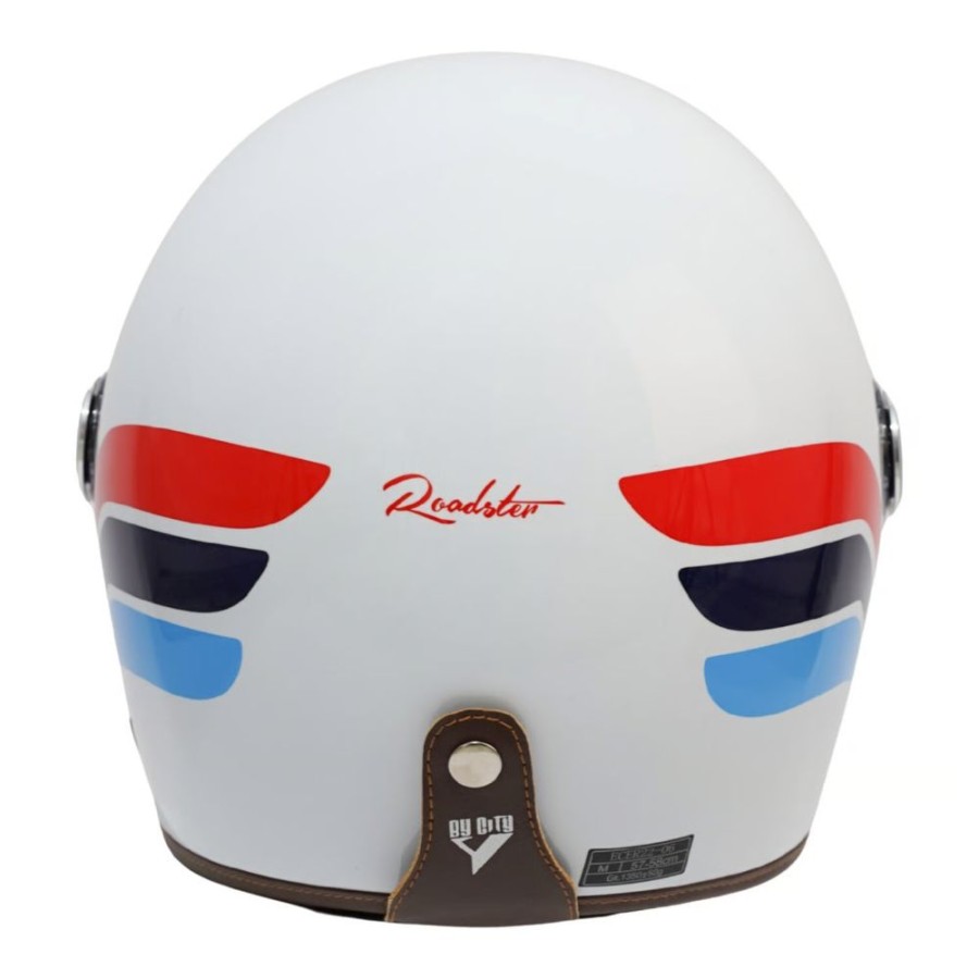 Ier Roadster Helm von By City hat einen klassischen Stil, inspiriert von den Designs der 1970er Jahre, mit einem breiten Sichtfeld und sehr komfortabel. Außenhelm aus Faserverbundwerkstoff mit Multi-Density-Polsterung, Innenausstattung herausnehmbar und waschbar. I l Helm ist ECE-geprüft; ECE / UN R.22.06