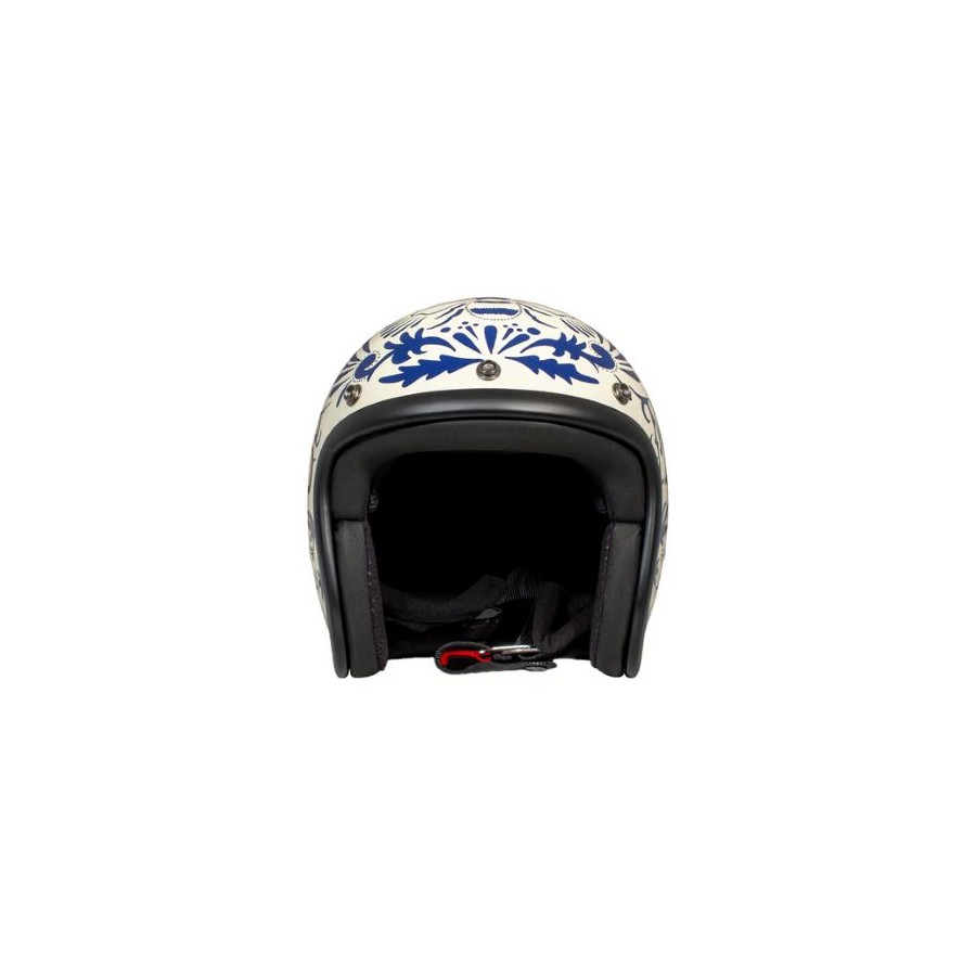 Der Retro-Helm ist eine Neuauflage des berühmten und kultigen Helms aus den 1970er-Jahren. Er ist der kleinste zugelassene Helm seiner Kategorie. Die Helmschale besteht aus Fiberglas und bietet dank des hochwertigen Innenfutters hohen Tragekomfort. Das Hauptziel des Unternehmens war es, den traditionellen Helm durch eine Retro-Version zu ersetzen und ihn so zu einem modischen Accessoire mit originellem Design zu machen. Die Kollektion ist mit über 30 Designs erhältlich; jedes Modell hat seinen eigenen Charakter und alle bestechen durch fantastische Designs. TECHNISCHE DETAILS: - Fiberglas-Helmschale - Herausnehmbares und waschbares Innenfutter - Zwei verschiedene Helmschalen für maximalen Komfort und Kompaktheit - Integrierte Visierknöpfe an der Helmschale - Doppel-D-Ring-Verschluss - ECE 22.06-Zulassung - DOT-Zulassung GRÖSSEN: - XS - 54 cm - S - 55 cm - M - 56/57 cm - L - 58 cm - XL - 59/60 cm