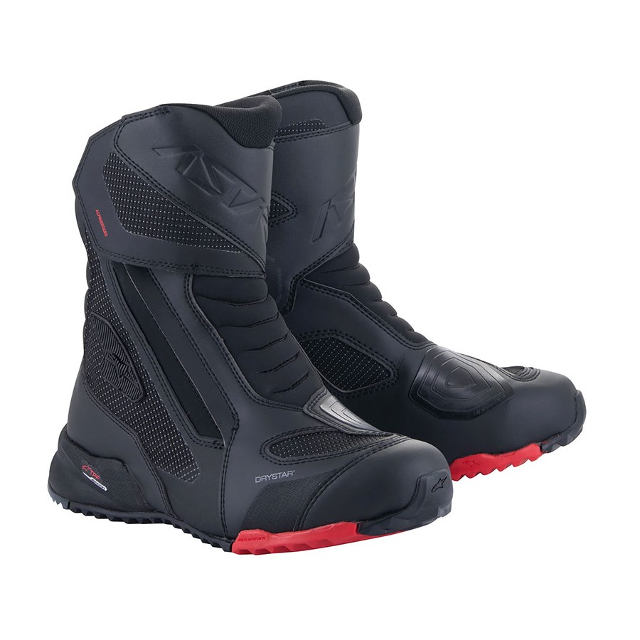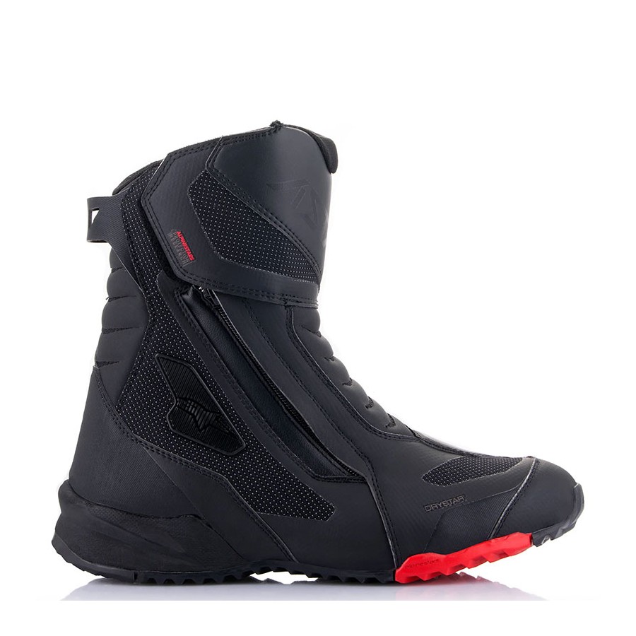 Der RT-7 verfügt über eine Drystar®-Membran für 100%ige Wasserdichtigkeit und Atmungsaktivität. Das moderne Obermaterial besteht aus einer fortschrittlichen Mischung aus Mikrofaser und hochfestem Synthetikgewebe, die mit nahtlosem PU für verbesserte Atmungsaktivität laminiert ist. Der integrierte Transversal Protection Frame (TPF) von Alpinestars schützt den Fuß und bietet die notwendige Unterstützung im Fußbereich, ohne die Beweglichkeit des Vorderfußes einzuschränken – für optimalen Gehkomfort. Verstärkte Fersenkappe und Zehenbox mit zusätzlichem Schaltpolster und verstärktem Schienbeinbereich schützen vor Stößen. Die Schuhöffnung wird durch einen seitlich angebrachten, elastischen Reißverschluss mit Klettverschluss-Abdeckung reguliert, um den Reißverschluss zu schützen und die Beweglichkeit des Schuhs zu gewährleisten. Das dynamisch gestaltete Schaltpolster aus 3D-gedrucktem PU bietet effektiven Schutz des Fußrückens. Materialzusammensetzung: 54 % Mikrofaser, 23 % Polyurethan, 16 % Polyester, 5 % EVA, 1 % TPU und 1 % TPR. Innenfutter: 100 % Polyester.