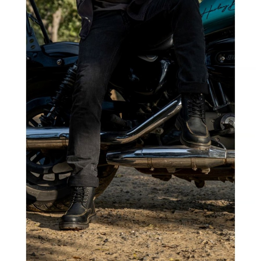Die Trip Machine Moc-Toe-Stiefel sind ein Klassiker, der sich über die Jahre bewährt hat. Ursprünglich Anfang des 20. Jahrhunderts für Fabrikarbeiter entworfen, zeichnen sich diese Stiefel durch ihre markante Mokassin-Zehenkappe aus, die zusätzlichen Schutz und Langlebigkeit im Zehenbereich bietet. Die Moc-Toe-Zehenkappe verfügt über eine 1,8 mm dicke Verstärkung an Zehen und Ferse sowie Knöchelprotektoren. Gefertigt aus robustem, abriebfestem Leder, bieten die Stiefel Schutz bei einem Sturz. Die Sohle aus Kunstharz sorgt für optimalen Grip auf der Straße. Ein Metallgelenk, eine Texon-Innensohle und ein hochwertiges Lycra-Futter garantieren höchsten Tragekomfort auch an langen Tagen. Die Moc-Toe-Stiefel sind sowohl fürs Motorradfahren als auch für die Freizeit geeignet. Sie sind die perfekten Schuhe für Tage, an denen Sie nicht auf dem Motorrad sitzen. Ein zeitloser Schuh, der Stil und Funktion vereint.