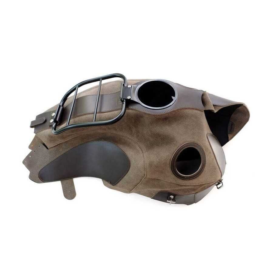 Tankdeckel handgefertigt in IItalien aus hochwertigem, robustem Spaltleder; gewachst für Wasserfestigkeit.