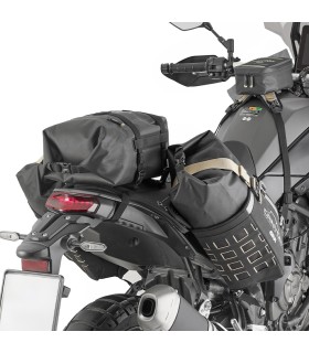 Modulares, hufeisenförmiges Gepäcksystem, bestehend aus zwei 16-Liter-Seitentaschen und einer 12-Liter-Hecktasche.