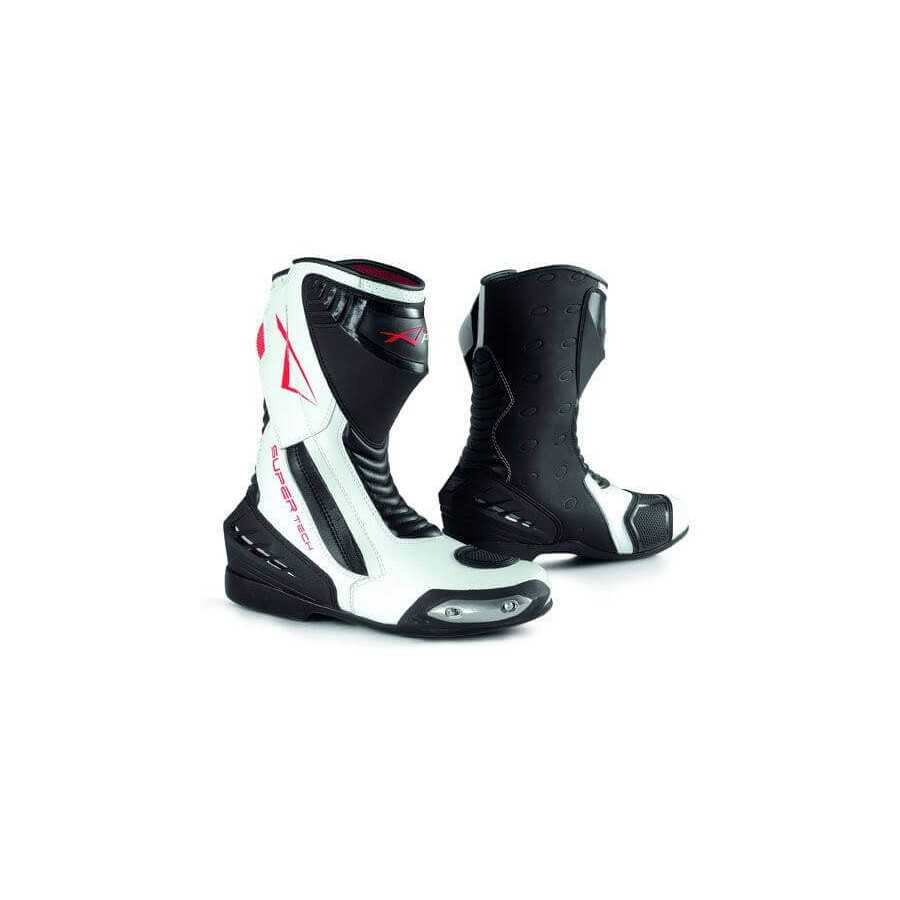 MATERIALIEN: Leder SCHUTZ: Schienbein, Ferse und Knöchel INNEN: Polyester GRÖSSEN: von 40 bis 46 FARBE: schwarz / weiß TECHNISCHE INFORMATIONEN: Sportstiefel aus hochtechnischem Material und für mehr Fahrkomfort ausgelegt. Seitlicher Reißverschluss, geschützt durch ein Band, das mit dem Klettverschluss einfach am Stiefel befestigt werden kann. Verstärkte Spitze, Sohle mit differenziertem Profilmuster zur Erhöhung der Anti-Rutsch-Wirkung auf den Plateaus. Thermogeformter Einsatz zum Schutz von Knöchel, Ferse und Schienbein. Schaltschutz und weiche Innenpolsterung. Schieber aus Metallmaterial. Attraktives Design, das alles sehr aggressiv und einzigartig macht.