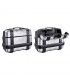 Paar 33-Liter-Koffer mit Aluminium-Finish, ausgestattet mit Klappe zum Öffnen von oben: - bis zu 10 kg Ladung - 33 Liter Fassungsvermögen - 411 x 230 x 526 cm - mit Sicherheitsschloss-System - Aluminium-Panzerung.