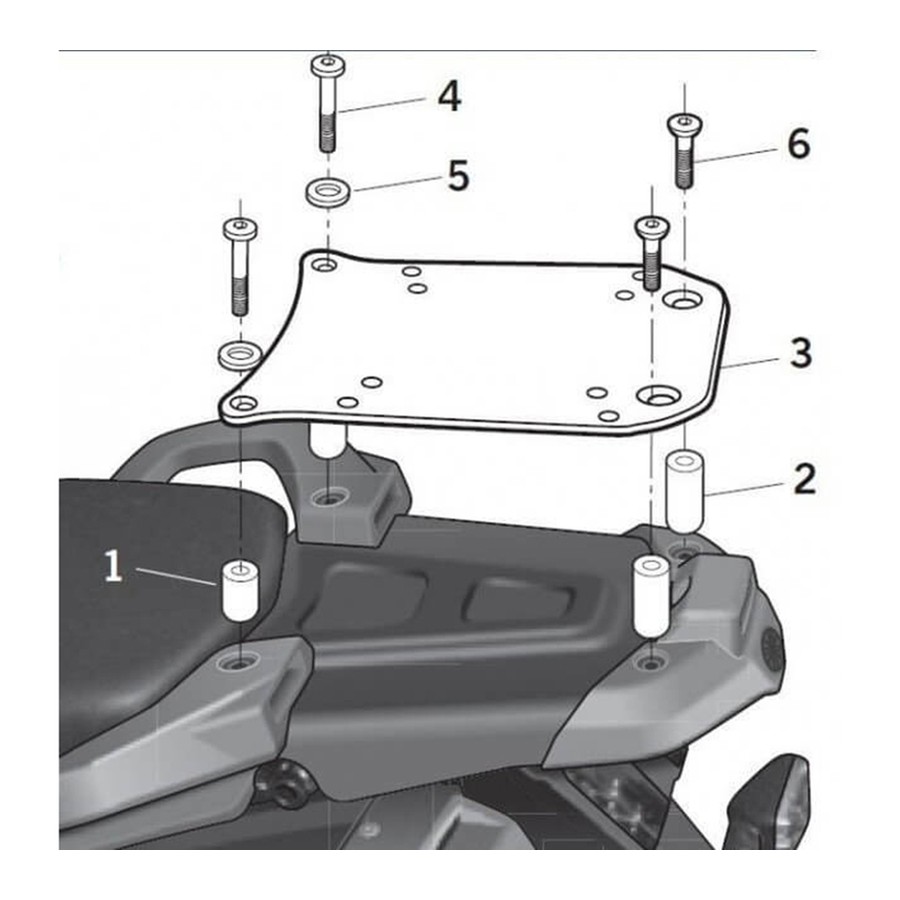 Zur Montage des Topcases am Motorrad ist die Verwendung der im SHAD-Topcase enthaltenen Platte erforderlich. (Außer bei TERRA-Fällen).