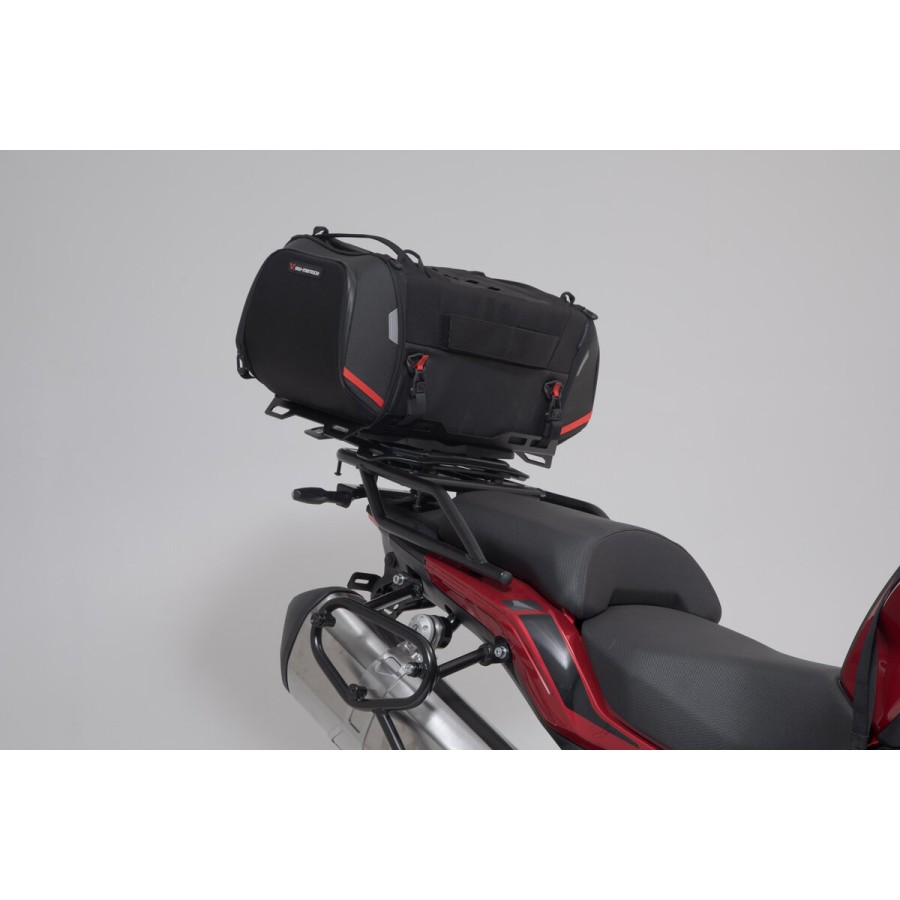 Die Hecktasche aus der PRO Serie fertigt SW-MOTECH aus unverwüstlichem 1680 D Ballistic Nylon und den Gepäckträger aus robuster Aluminium-Legierung. Die Befestigung des Trägers erfolgt an den modellspezifischen und belastbaren Anbaupunkten am Motorrad.