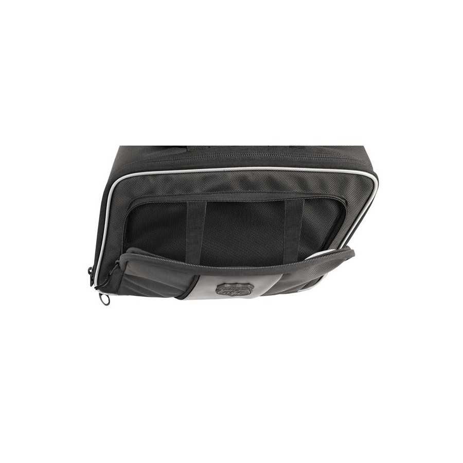 Abmessungen: 13" (33cm) lang x 5,25" (13,3cm) breit x 8,5" (21,6cm) hoch. Fassungsvermögen ca. 9,5 Liter pro Seite. Hergestellt aus branchenführendem UltraMax®-Gewebe und bietet maximalen UV-Schutz gegen Ausbleichen benutzerdefinierte Schutzblechstrebenhalterungen. Wird sicher an den meisten Softail-, Dyna-Modellen und vielen anderen Modellen befestigt. Beachten Sie, dass bei einigen Modellen beim Einbau von Satteltaschen Rücklicht/Blinker verlegt werden müssen. Ausgestattet mit einer einstellbaren, selbstbefestigenden, abnehmbaren Gabel. Die starre Konstruktion hat eine hellgrau gefüttertes Inneres, eine Außentasche mit internen elastischen Riemen und abschließbaren Reißverschlüssen, um es dort zu halten, wo Sie es haben möchten. Reflektierende Paspeln sorgen für verbesserte Sichtbarkeit bei Nacht. Inklusive 100 % wasserdichter Regenhülle. Hinweis: Einige Modelle benötigen möglicherweise ein Rücklicht / Abbiegen Signalverlagerung beim Einbau von Satteltaschen.