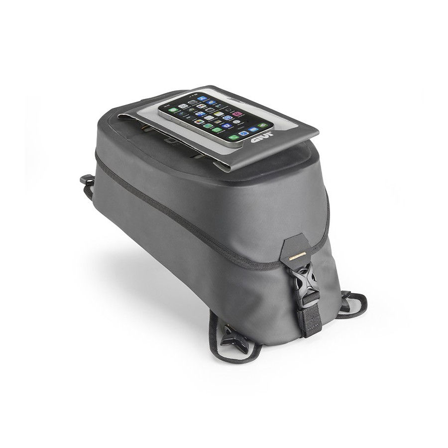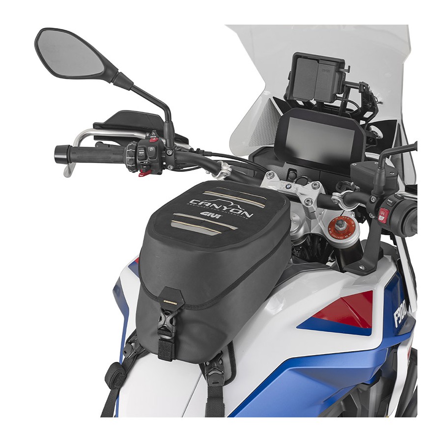 Der wasserdichte Canyon Tankrucksack besteht aus hochwertigen, abriebfesten und hochfrequenzverschweißten Materialien. Der konturierte Deckel schützt den wasserabweisenden Reißverschluss und gewährleistet so Wasserdichtigkeit selbst bei starkem Regen. In der praktischen, wasserdichten Tasche unter dem Deckel und der abnehmbaren Smartphone-Halterung haben Sie Ihr Handy oder wichtige Dokumente immer griffbereit. Der Rucksack lässt sich mit vier praktischen Schnellverschlussgurten mit Schlaufe am Tank von Enduro- und Maxi-Enduro-Motorrädern befestigen und ermöglicht so ein schnelles Anbringen und Abnehmen beim Anhalten. Zusätzlich kann der Rucksack mit einem Schnellverschlussgurt am Lenker befestigt werden.
