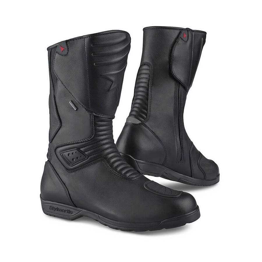 Mit ihrer Schlichtheit sind die Denver Stiefel von Stylmartin die richtige Wahl für alle, die ihre Stiefel unverzichtbar, bequem und sicher haben wollen. Hergestellt aus hochwertigem, weichem Nappaleder, sind sie wasserdicht und atmungsaktiv, perfekt, um Sie zu begleiten, wohin Sie gehen wollen und bei jedem Wetter. Technische Eigenschaften Obermaterial: weiches Nappaleder Futter: wasserdicht und atmungsaktiv Knöchelschutz: beidseitig innenliegendes PU Schutz: überspritzter Getriebeschutz Verschluss: Reißverschluss+Klettverschluss Einlegesohle: anatomisch und herausnehmbar Sohle: Gummi mit rutschfestem Halt Größen: 38/47 Farben: schwarz Motorradtourenstiefel, wasserdichtes weiches Nappaleder, mit Schutzblech und Knöchelschutz, anatomische Einlegesohle, atmungsaktives Futter, rutschfeste Sohle.