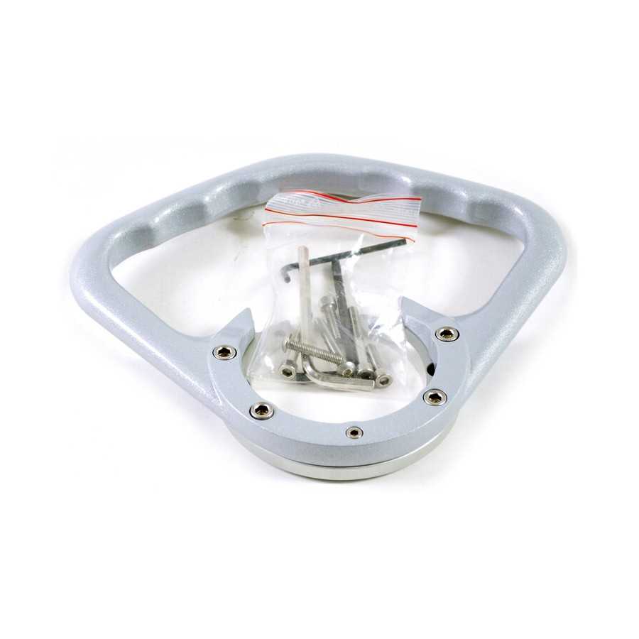 Der A-SIDER wird an dem Tankstutzen verankert. Seine glatte Oberflaeche verhindert moegliche Verletzungen beim Fahrer und Beifahrer. Seine Form erlaubt dem A-SIDER sich in die Linienfuehrung des Motorrades zu integrieren. Seine Funktionalitaet, Robustheit und Design sind die Loesung, die Motorradfahrer lange gesucht haben.