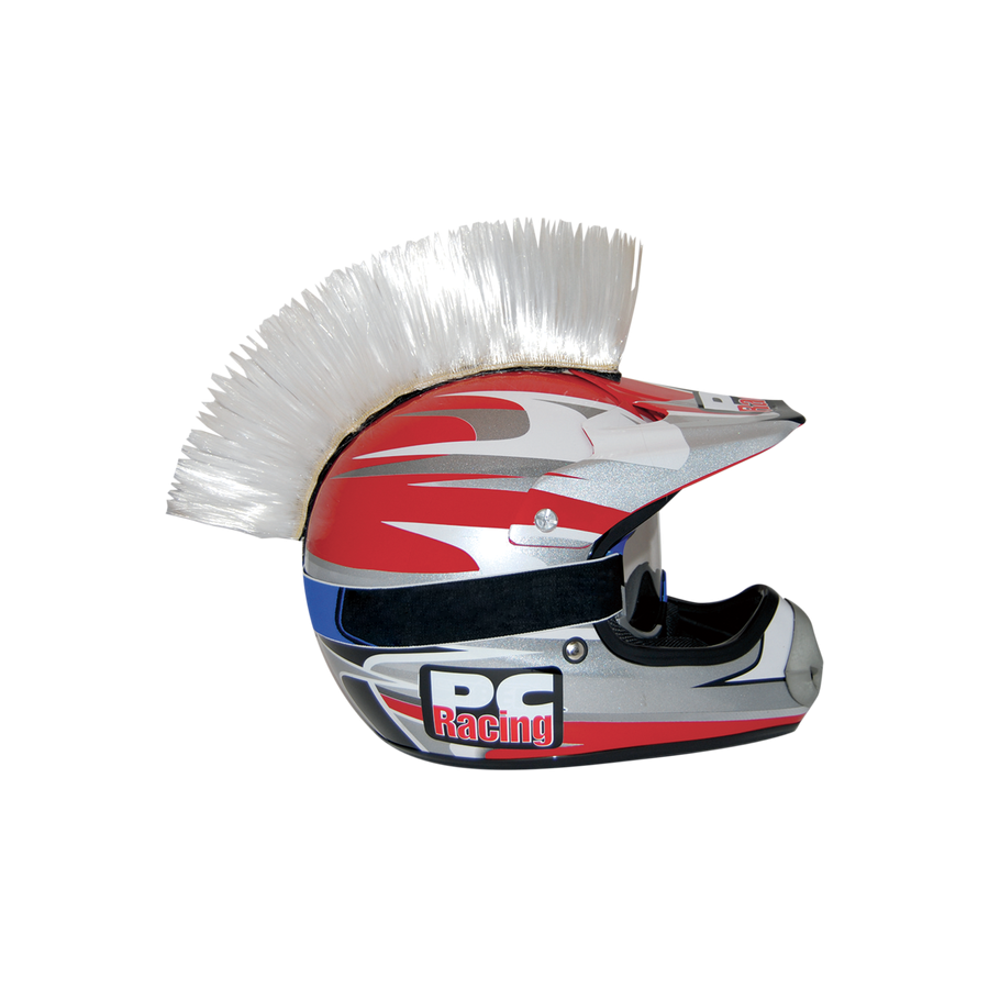 Funktioniert auf jedem Helm; Jeder Fahrer kann eine gewisse Einstellung hinzufügen. Trennen Sie einfach das Peel 'n Stick-Hakenband von Mohawk oder Blade, ziehen Sie die Rückseite ab, richten Sie den Helm in der gewünschten Position aus und drücken Sie ihn fest. Irokesen reparieren; Klettverschlüsse halten bei über 320 km/h, sollten jedoch gelegentlich überprüft werden Verschiedene Farben oder Stile können in Sekunden angelegt werden.