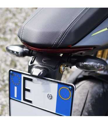Produkt mit revolutionärem Design, leicht, Racing und verstellbar. Hochwertiges schwarzes Aluminium-Kennzeichen, je nach Land differenziert. Robuste Stütze aus technischem Material mit Anti-Tuning-System zur Reduzierung störender Vibrationen, die vom Fahrrad übertragen werden. Halterungen für Fahrtrichtungsanzeiger aus Aluminium mit Einzellochdurchmesser 10 mm. Aluminiumhalterungen je nach Modell diversifiziert. Eingetragenes Design. Kennzeichenhalter von Evotech müssen nicht modifiziert werden. ALLE EVOTECH KENNZEICHEN SIND NICHT IN DER KENNZEICHENLEUCHTE, REFLEKTOR, REFLEKTORHALTERUNG ENTHALTEN.