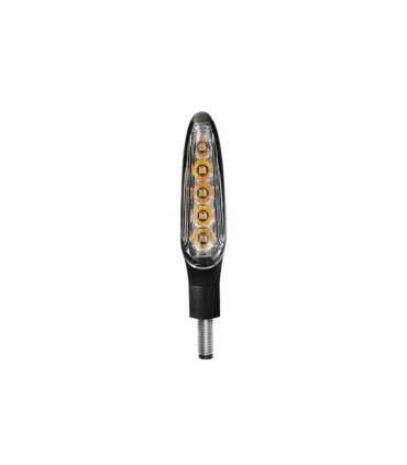 Mattschwarzes Aluminiumgehäuse. Klares E-geprüftes Glas. Mit sequentieller Beleuchtungs-LEDs (ein Leuchten nach dem anderen, in einer "Wellen"-ähnlichen Bewegung). - 12 V/2,2 W - Sequentielle Beleuchtung - Gehäuseabmessungen: 24 mm hoch x 21 mm tief - Gesamtlänge, einschließlich Gewinde: 112 mm - M8 x 125-Gewinde - Inklusive Verkabelung. 1 stuck