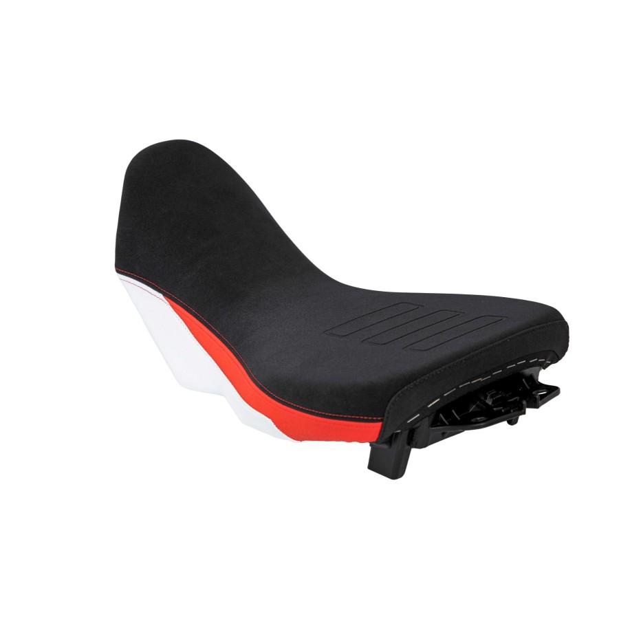 Dank fortschrittlicher ergonomischer Forschung wurde der Sitz komplett neu gestaltet, um die hintere Auflagefläche zu vergrößern und so den Komfort auf längeren Fahrten zu optimieren. Die Vorderseite des Sitzes behält jedoch ihr ursprüngliches Profil bei, um eine optimale Beinhaltung zu gewährleisten und die Manövrierfähigkeit auch im Stand und im Gelände zu verbessern.