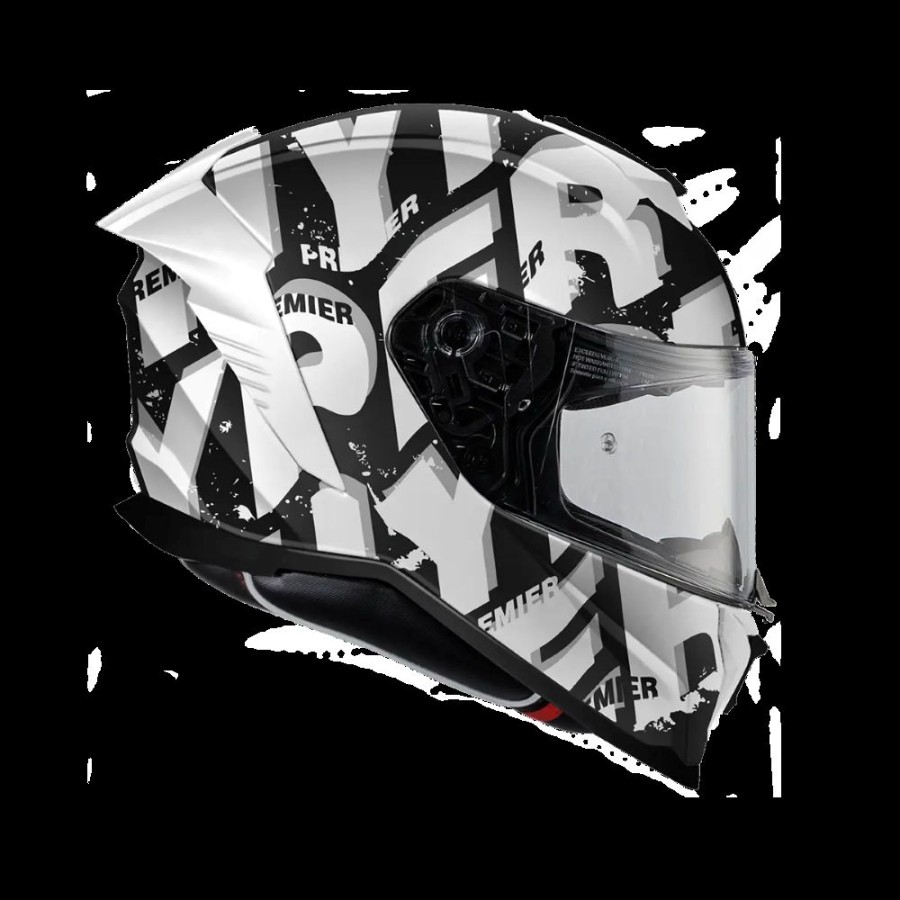 The visor was also the subject of a long study, carried out by our Research and Development department: it is in fact 11% wider than previous Premier models, thus offering a greater field of vision. It is a high-resistance Clear visor, processed with an anti-scratch treatment and prepared for the insertion of the Pinlock® anti-fog system. A Pinlock® lens is found in the package, included in the price. The visor block is placed in the center of the chin guard and is easily operated: a simple click makes the helmet even quieter and safer, especially at high speeds.