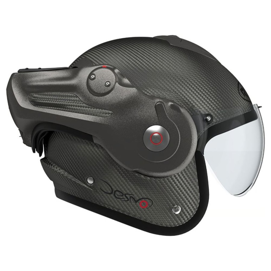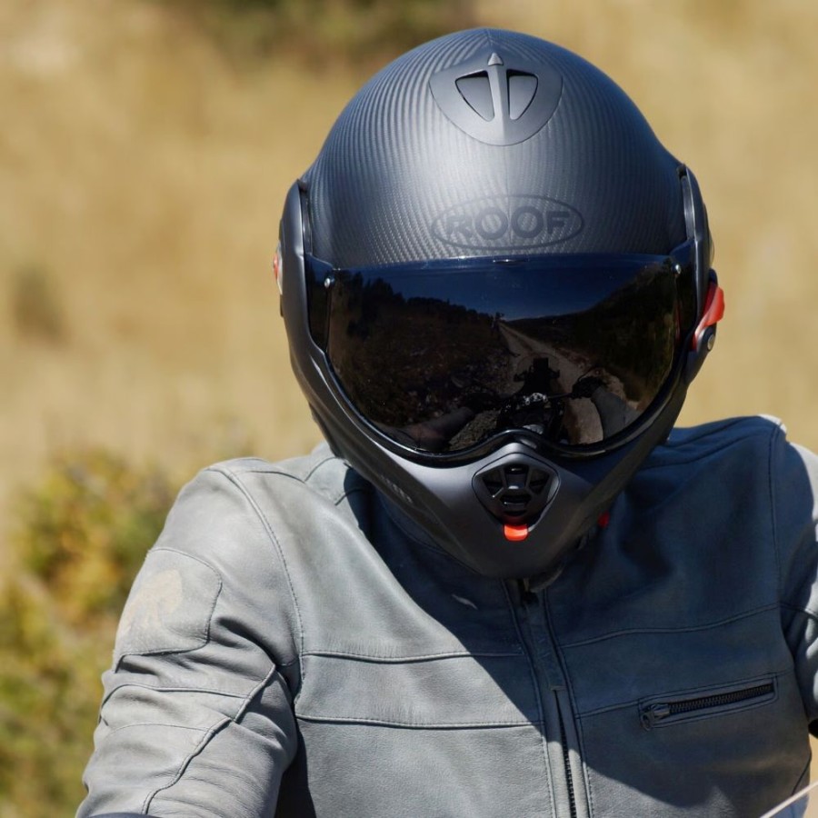 The ultimate alliance of a remarkable design, from mattnoble and state-of-the-art engineering. The ROOF concept Desmo patented revolutionized the helmet versatile thanks to his visor automatically articulated by the rotation of the chin tree to enjoy optimal jet comfort and in full face. It is big back in this latest version Desmo 3 Carbon, ultra light and equipped with a series of a visor Last generation photochromic ensuring progressive and automatic sun protection. Desmo 3 is also distinguished as the only one helmet versatile Roof having a central unlocking of the chin tree.