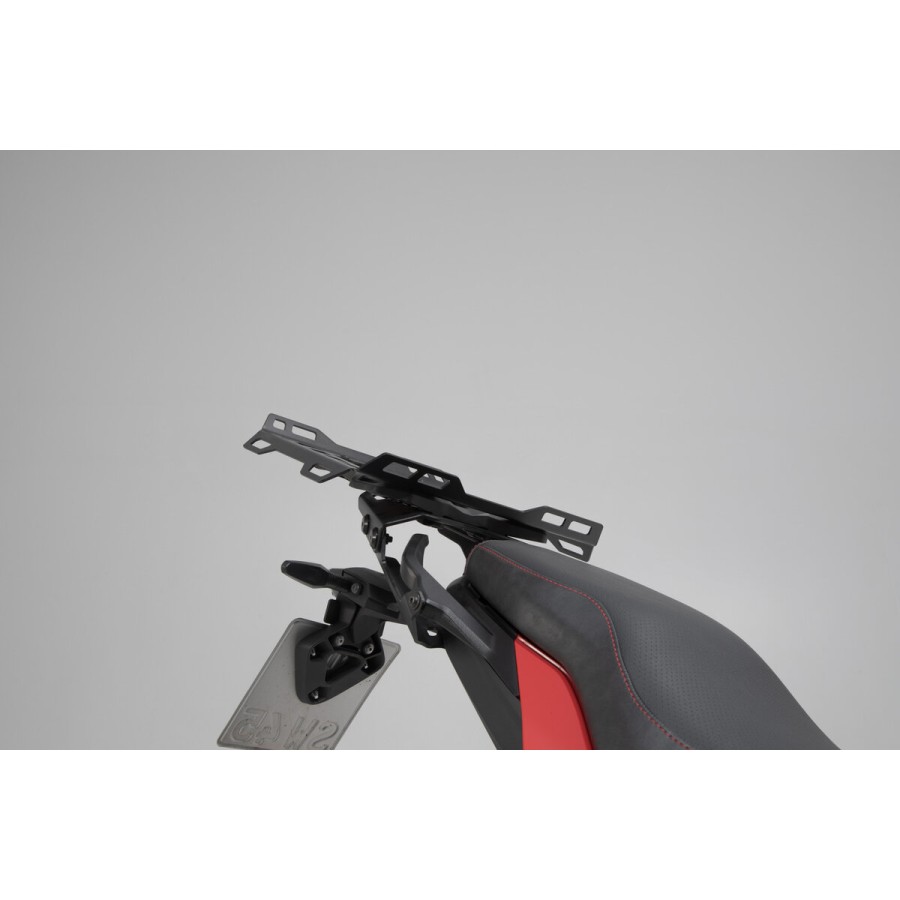 SW-MOTECH manufactures the tail bag from the PRO series using indestructible 1680D ballistic nylon and the luggage rack from robust aluminum alloy. The rack attaches to the model-specific and heavy-duty mounting points on the motorcycle.