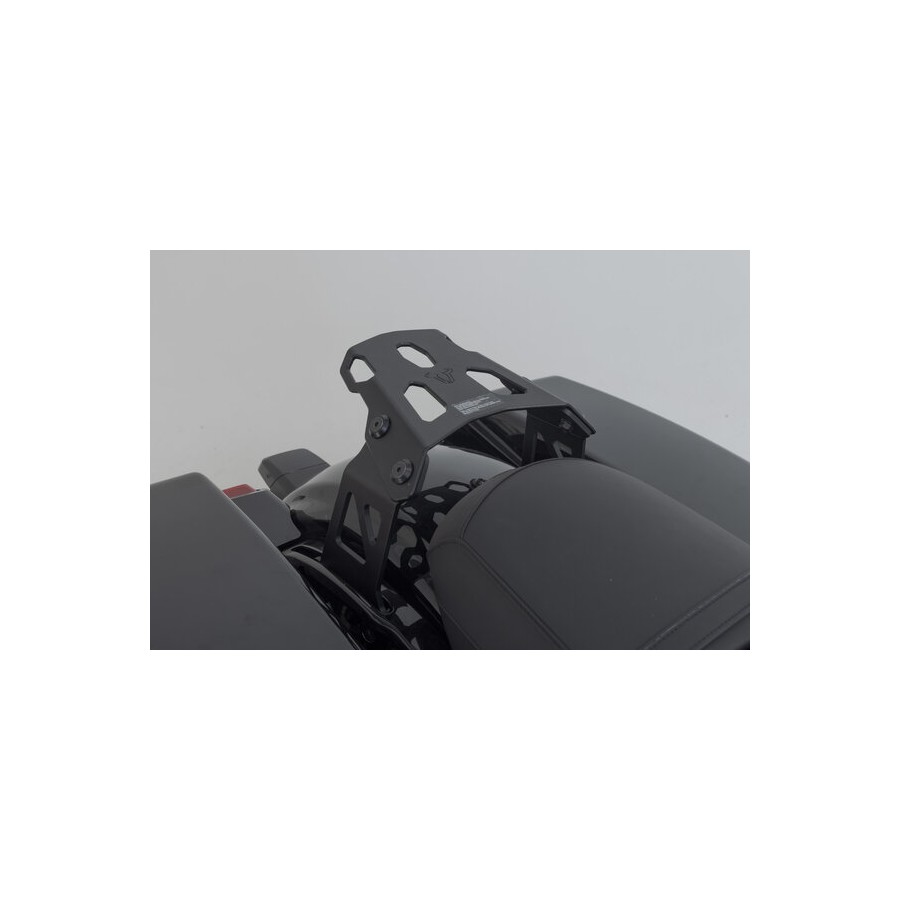 SW-MOTECH manufactures the tail bag from the PRO series using indestructible 1680D ballistic nylon and the luggage rack from robust aluminum alloy. The rack attaches to the model-specific and heavy-duty mounting points on the motorcycle.