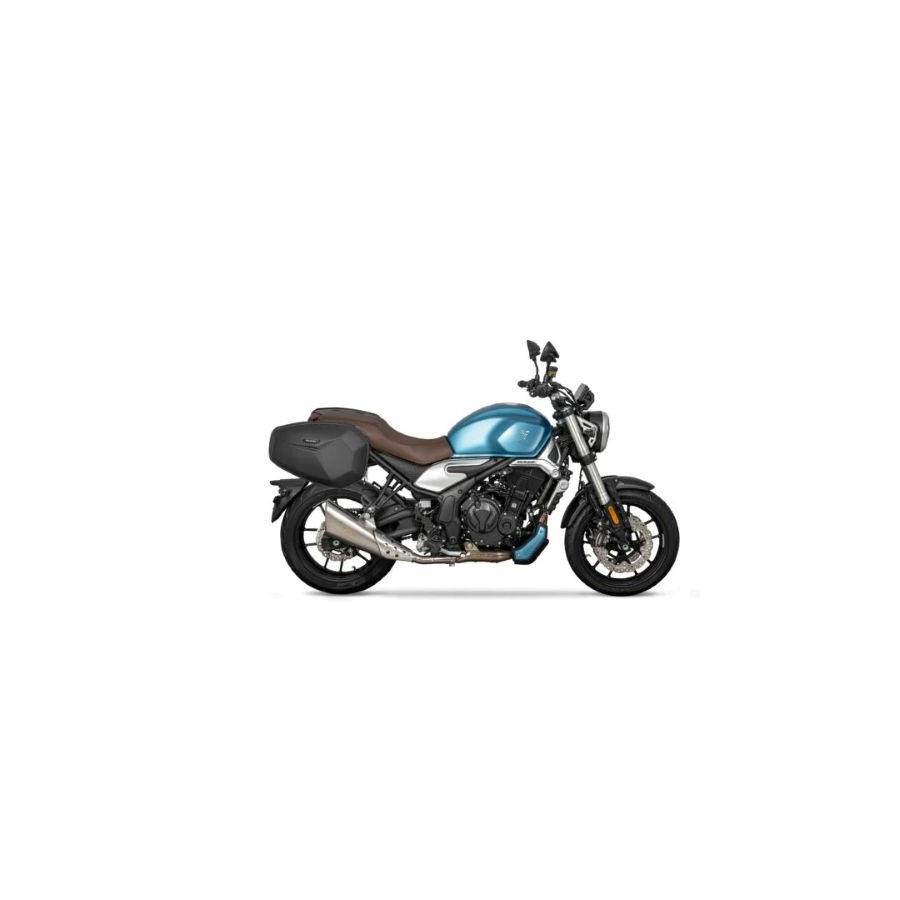 Specific side bag holder for side bags. This attachment offers greater safety and durability when using side bags.