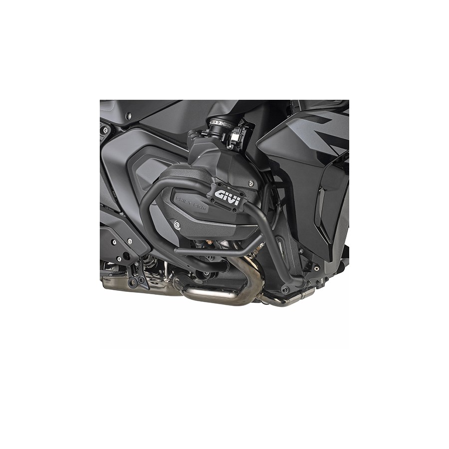 Specific tubular engine guard, black. Integrated slider.
