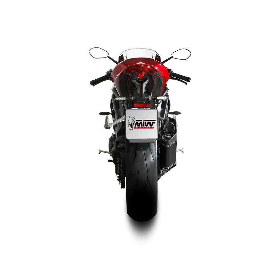 This version features a hexagonal titanium body and a T-will weave carbon fiber end cap capable of withstanding the high temperatures typical of racing. Compared to the original exhaust, the SR-1 titanium exhaust guarantees a significant weight reduction.