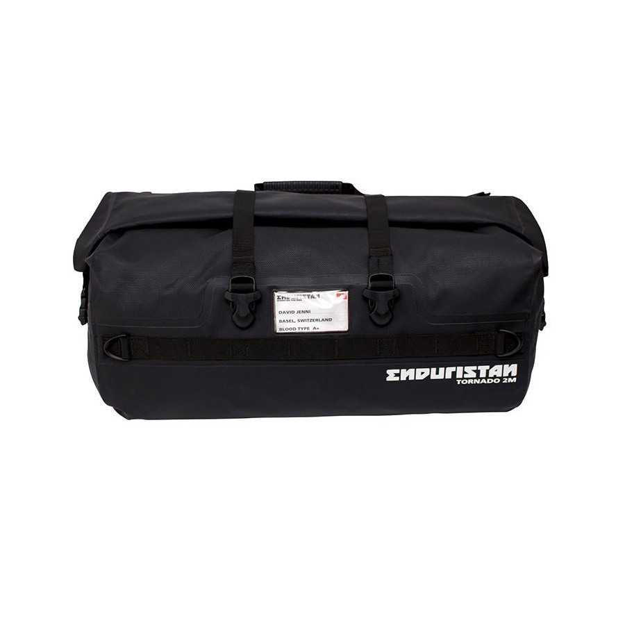 Quality belts. With the dedicated fixing loops for the ROKstraps belts, the Tornado 2 have a secure and very stable fixing. DRIVE IN ANY CONDITION Waterproof With the 3-layer waterproof fabric, roll top closure with welded joints, the Tornado 2 are 100% waterproof, mud, snow and dust. EASY ACCESS Simple and fast Large opening for a practical and easy access. FEATURES Internal pocket with zip closure 3 internal mesh pockets Red high visibility interior 2 rows of hooks for additional loads Ergonomic handle Transparent pocket for name 4 compression straps TECHNICAL DETAILS Tornado 2 - Small (20 liters) Dimensions: 45 x 24cm Tornado 2 - Medium (32 liters) Dimensions: 53 x 27cm Tornado 2 - Large (51 liters) Dimensions: 61 x 32cm Tornado 2 - XLarge (82 liters) Dimensions: 67 x 38cm ACCESSORIES For fixing to the motorcycle: Rokstraps Enduristan straps To increase the volume: Xs Base Pack bag For small electronic items: Small Part Organizer bag For internal division of the luggage: Isolation Bag To carry the bag more comfortably: shoulder strap.