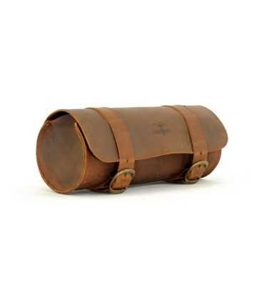 Universal genuine leather tool roll, installs with straps to forks, frame etc Dimensions of this version: 30.5cm wide x 13cm diameter. 4 Liter volume