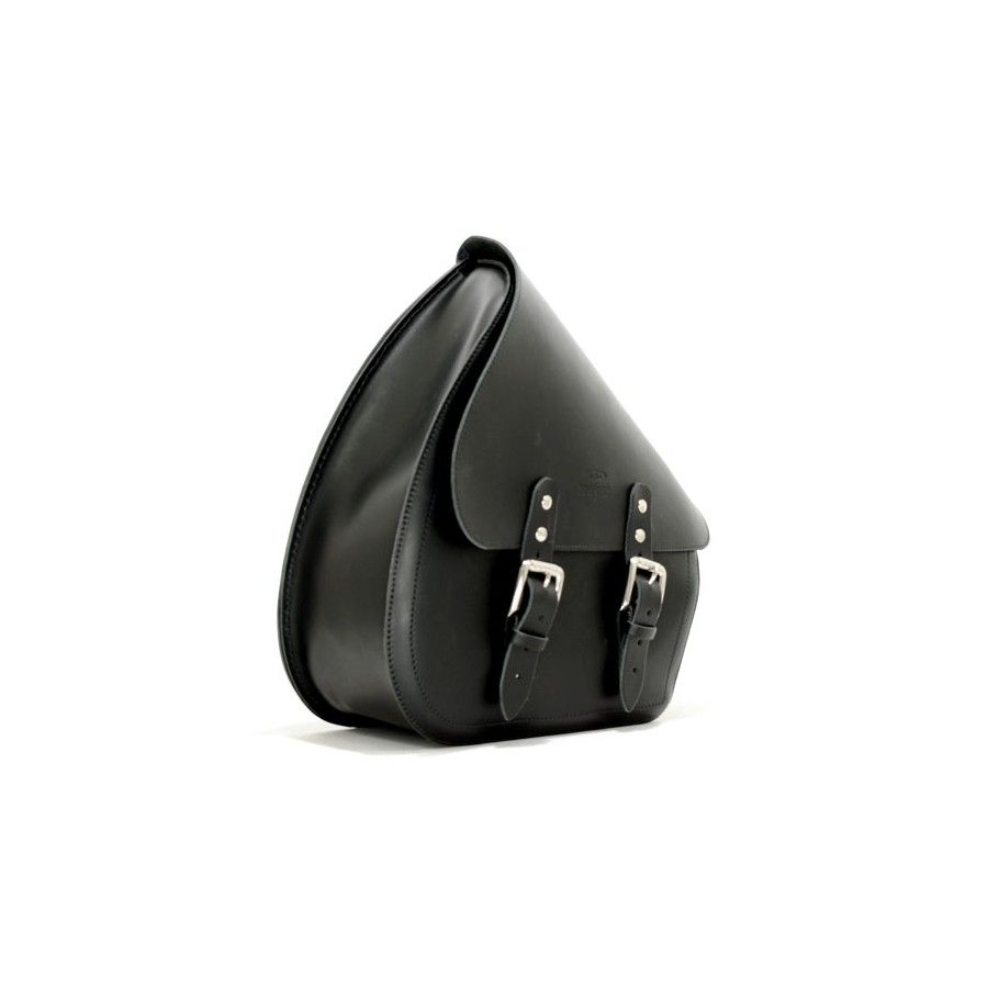 Small. Mounts to left side of the Softail swingarm. Complete with leather straps on the rear side for easy installation onto the swingarm tubes. - Approx dimensions: 27cm high x 37cm long x 13.5cm deep - Capacity: 7 liter