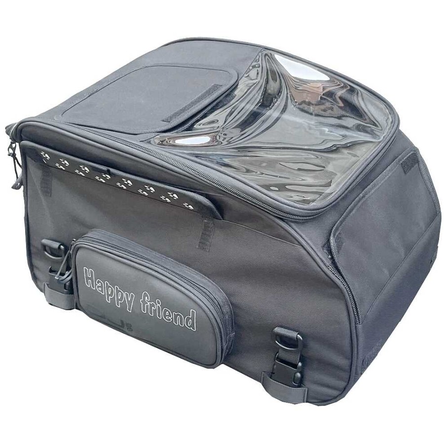 Designed for pets up to 8 kg, the bag offers 30 liters of capacity and compact dimensions (26 x 46 x 30 cm), ideal for ensuring a cozy and well-ventilated space. The strap fastening system allows for secure mounting on the saddle, adapting to most motorcycles without additional supports.