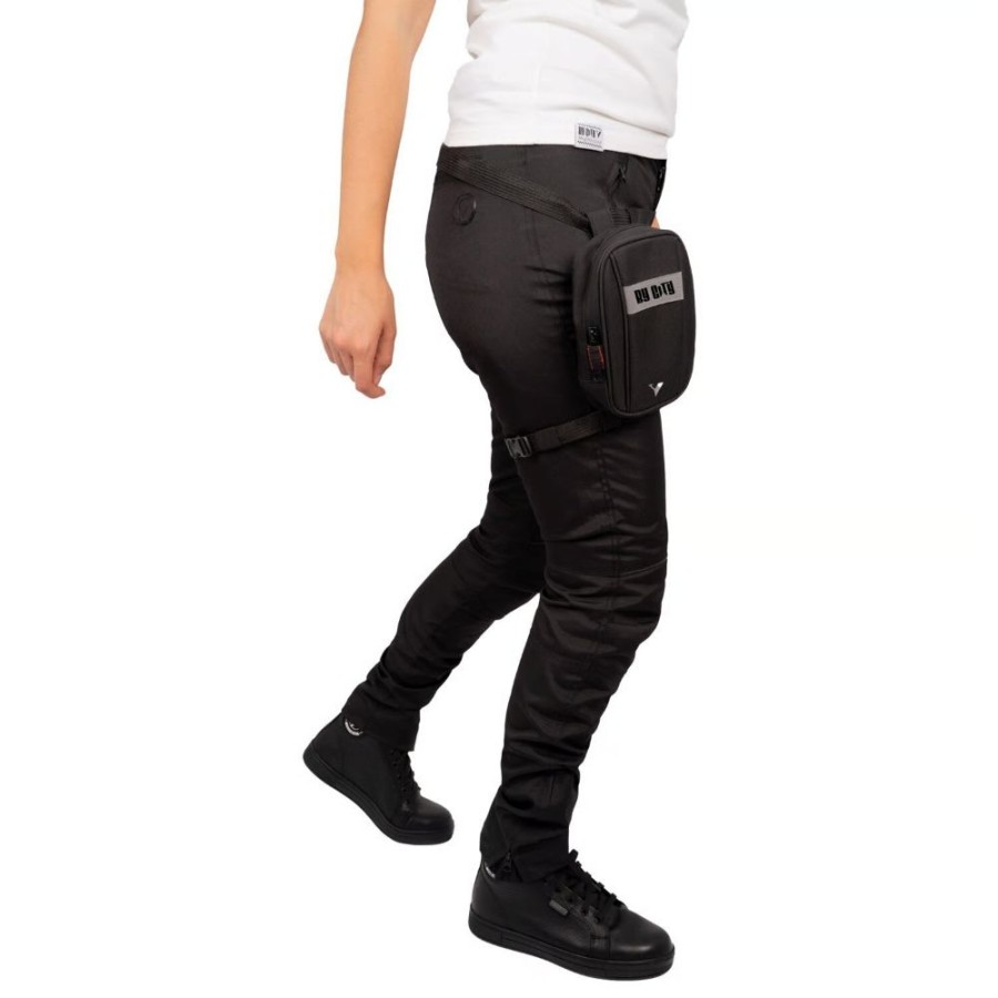 A practical and durable accessory, made of abrasion-resistant fabric with reflective details for greater visibility. Includes an internal pocket and an elasticated garage to hide the zippers. Functionality and style