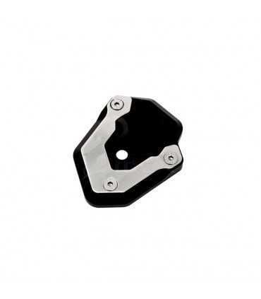The sidestand foot increases and improves the supporting surface and the stability on unpaved and soft ground. CNC milled from high strength aluminum and black anodized. The clamping plate and inluded screws are made from stainless steel.