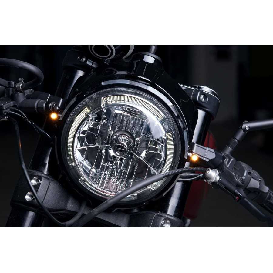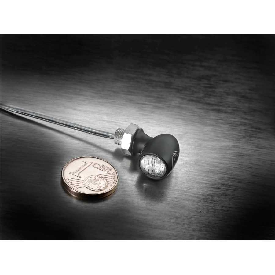 This is our most compact indicator ever. For comparison: The light surface of the Atto® would fit four times on a 1 Cent coin! This consequent reduction offers completely new styling options for the motorcycle. In fact, the Atto® basically disappears on the motorcycle. This indicator will only grab your attention when it really has to!
