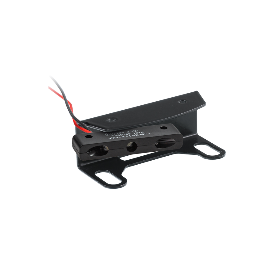 Black powder coated license plate bracket that allows installation without making changes to the fairing parts. Including LED license plate light (ECE approved)