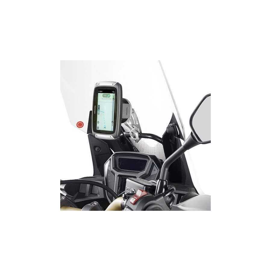Universal anodized aluminium support for STTR40SM, SGZ39SM, S952B, S953B, S954B, S955B, S956B, S957B to be mounted onto steel tubes with a diameter of between 11.5mm and 14 mm. To be mounted on motorbikes with a cross piece located behind the windshield with a diameter between 11.5mm and 14mm