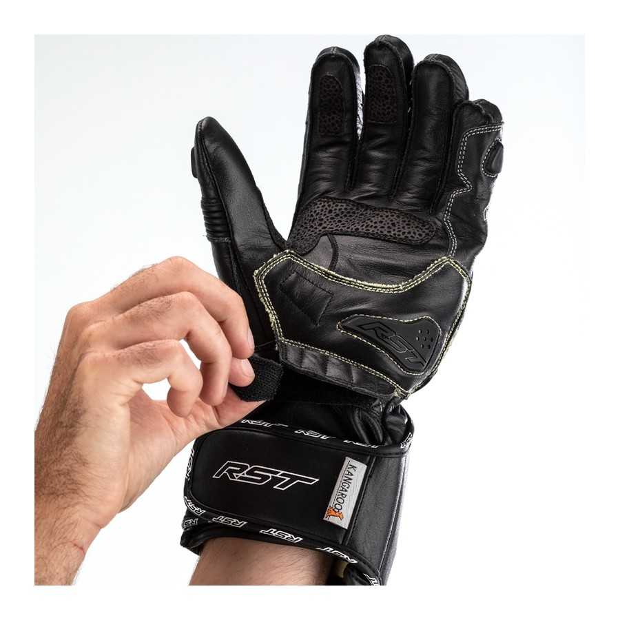 Made with both full-grain cowhide and kangaroo leather, the glove features a CE Level 1 Carbon Knuckle Protector for impact protection. DuPont™ Kevlar® Fibre on the palm stitching and underlay, along with double layer kangaroo leather and an RST palm slider protect the palm in the event of a high speed slide, while the double wrist and cuff closure offer a secure fit. DuPont™ Kevlar® lining throughout the rest of the glove prevents tearing, and elasticated conjoined fingers to prevent “finger roll” without affecting reach or flexibility when changing gear.