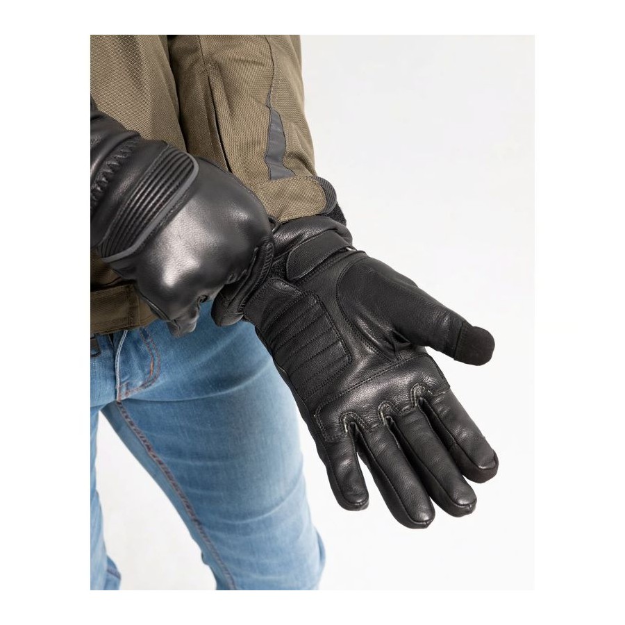 The By City Lyon gloves, crafted from high-quality leather with aramid reinforcements on the palm for superior abrasion resistance. These gloves feature touchscreen-compatible index fingers and thumbs, allowing you to use your devices without removing them. The Velcro fastening strap at the wrist ensures a secure and adjustable fit, while stretch panels on the fingers and back of the hand provide exceptional comfort. Lined with artificial fur for enhanced thermal insulation, these gloves also include reflective elements for increased visibility. The HIPORA membrane offers waterproof and breathable protection. Additionally, they come with a stylish key ring and are CE certified to UNE EN:13594:2015 level 1 standards, including knuckle protection.