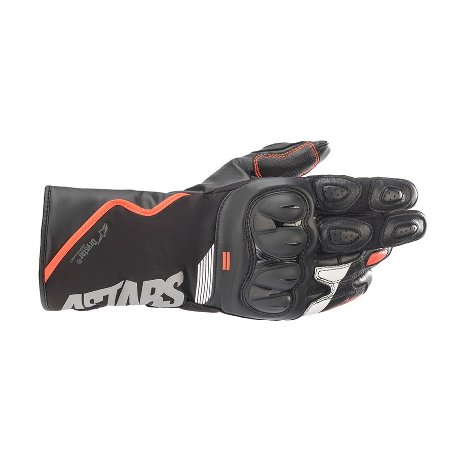 SP-365 Drystar® are sports gloves full of protective solutions such as the new Alpinestars SP knuckle protectors. With Alp-inestars Drystar® performance 100% waterproof and breathable technology for ideal protection in any weather condition and for a reduced thickness of the materials and greater sensitivity on the motorcycle controls. Made of highly resistant and soft soft PU and softshell construction to provide abrasion resistance and durability. Leather on the palm for greater abrasion resistance in key areas. Advanced poly-fabric reinforcements on the palm and thumb to provide greater grip on the bike's controls. Exterior with synthetic leather reinforcements and padding on the landing areas for maximum abrasion resistance. Alpinestars developed ergonomic stretch inserts between thumb and palm offer flexibility that greatly improves hand mobility. Tough new flexible protectors on Alpinestars SP knuckles to offer impact and abrasion protection with heat-stamped logo. Made according to Alpinestars Drystar® performance 100% waterproof membrane technology (on the palm only) reducing the thickness of the material to improve freedom of movement and sensitivity on the bike controls. Palm, fingers and back padded with impact absorbing EVA foam for improved fit and comfort. Double hook closure and adjustable loop on the cuff to hold the glove in place securely. Index tip compatible with touchscreen for use with smartphones and GPS. Jumper to prevent fingers from bending or separating excessively in case of impact. Printed logos to improve the lightness and integrity of the material. According to European laws, the CE mark is a compliance requirement for the sale of this product. The following standards apply to this product: EN 13594 2015, level 1 KP.