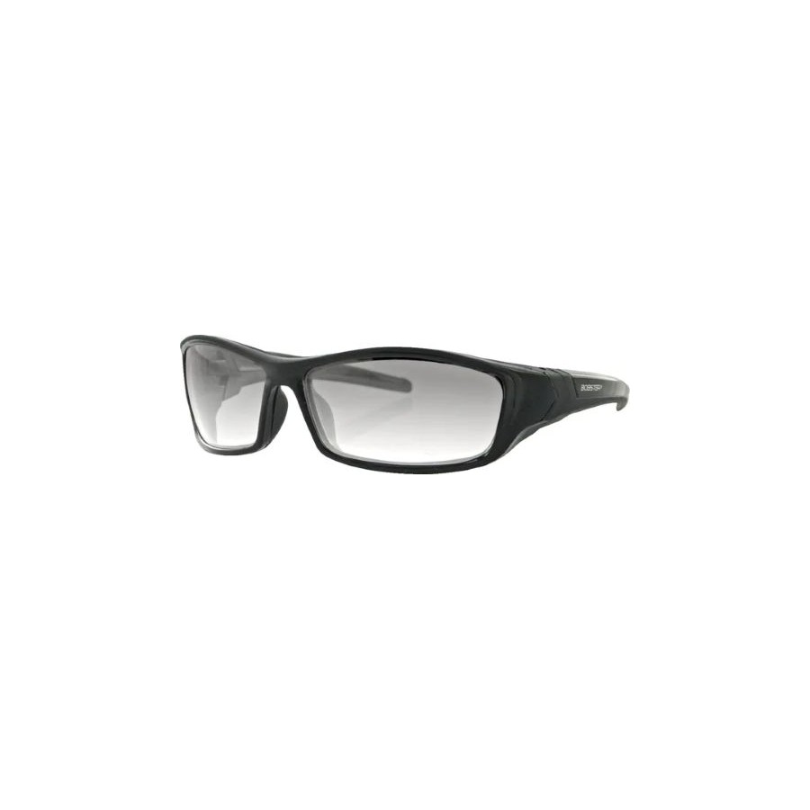 Introducing the Hooligan, stylish eyewear designed with photochromic lenses that adapt effortlessly to changing light. The wrap-around frame includes a subtle edge "cup" to minimize wind impact without the bulk of foam padding. These lenses shift from a light 85% tint to a medium grey at 32% transmission in bright light, providing clear vision throughout the day. Complete with a microfiber pouch for easy transport, the Hooligan is the top choice for bikers in need of adaptive, high-performance eyewear.