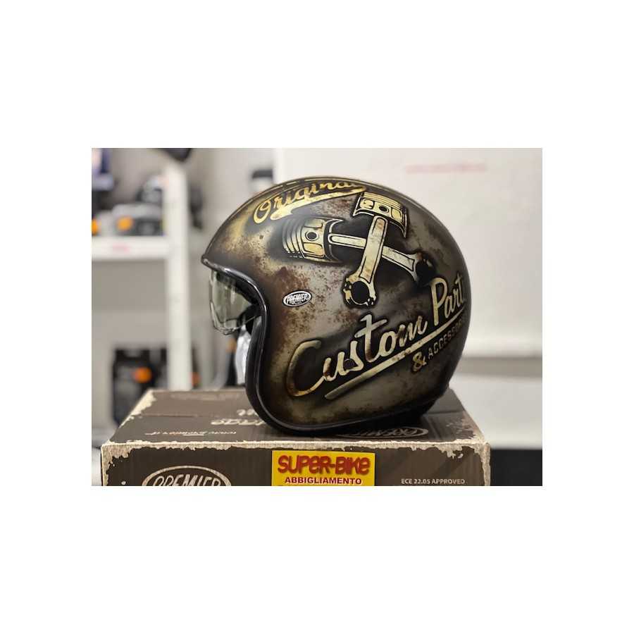 The materials used are always more precious and of better and higher tecnology: carbon, dyneema, vectran, epoxy resins for the external shells; Lexan for the moulding of the visors and components; technical anti-allergic fabrics for the internal pads. Maximum protection and safety are the first requirement of all Premier helmets. The carbon version in the Vintage version stands out. The Vintage Carbon shell is made of carbon, it's covered by transparent foil so you can see the carbon sheet and the model Carbon STAR BM and the model CARBON KEWLAR, where the carbon shell with aramidic fiber, shines out, it's adorned with a graphic and matt transparent cover. In all the other versions Vintage is in DCA, which is a tri-composite mix (dyneema, carbon and aramidic fibres). This is the same fibre mix that Premier uses on all its helmets and it comes from the long experience that this Italian company has developed through the years of study and applying these fibres into the helmets production. The materials used in this helmet are Carbon and Resin, internal lining on right and left inner, quick release mechanism on chin strap, from XS to XL sizes, weight: 900+-50g. ECE 22-06.