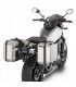 Trekker Dolomiti MONOKEY® case in a natural aluminium finish, 30 ltrs. Can be used as both a top case (compatible with all MONOKEY® plates), or as a side case (compatible with PL_ _ _ and PLR_ _ _ side frames). Deep-drawn base and lid, stainless steel rivets. Security Lock with standard dust-cover screw-top. Hooks to fix an elasticated cargo net on the underside of the lid. Four nylon belt-strap loops on the lid, which allow the mounting of additional bags using Trekker Straps. Capacity to store a 15-inch computer bag.