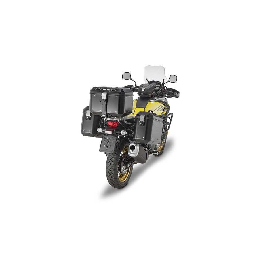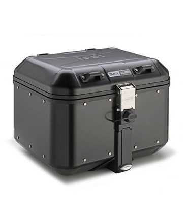 Trekker Dolomiti MONOKEY® case in a natural aluminium finish, 46 ltrs. Deep-drawn base and lid, stainless steel rivets. Security Lock with standard dust-cover screw-top. Hooks to attach an elasticated cargo net on the underside of the lid. Four nylon belt-strap loops on the lid, which enable the mounting of additional bags using Trekker Straps. Capacity to store one full-face or one modular helmet, or two jet helmets.