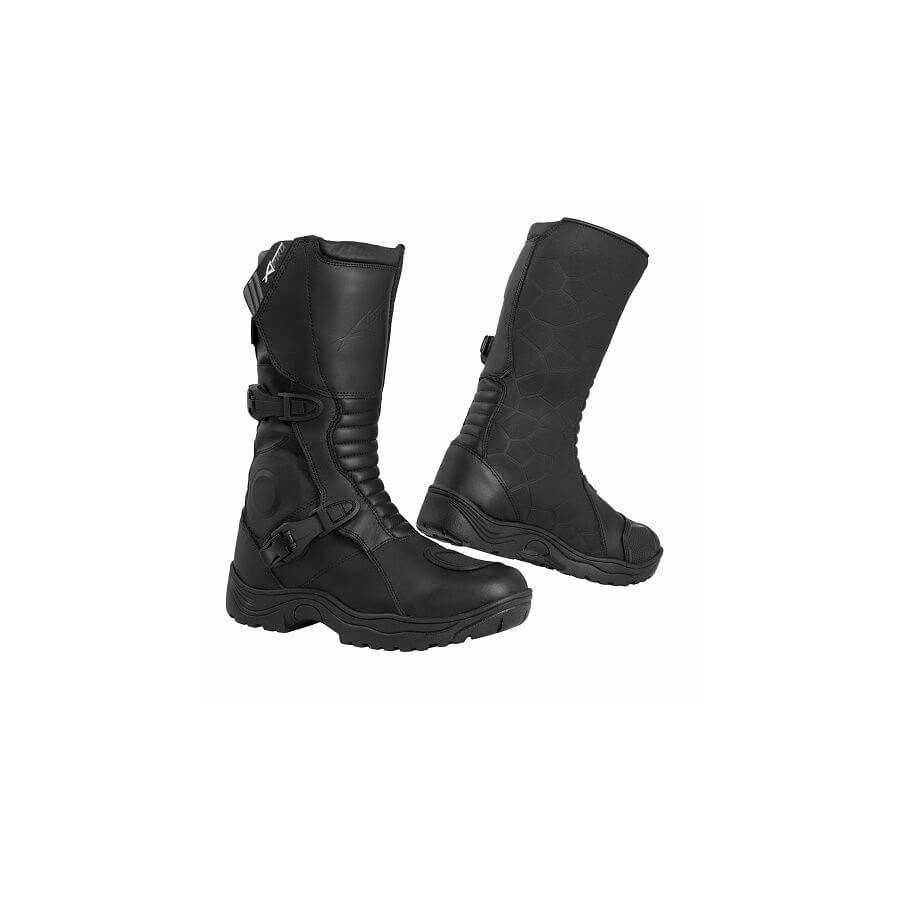 Vertigo, the A-Pro boot designed for cross-country / enduro use, made of highly technical, waterproof and breathable fabric. Ensures high standards of driving comfort even for the most extreme uses. Excellent fit and fit for this boot, thanks to the lateral opening adjustable by micrometric levers, with memory adjustment function, and velcro closure. The tip has a thermoformed insert, which acts as an exchange, and is rounded and reinforced. The tread design of the sole, is specially designed for off-road use, thus allowing great anti-slip ability from the footrests. Inside the boot, there is a thermoformed insert, which ensures the safety of the malleolus. The anatomical shaping, reinforced internally, and enriched by soft internal padding, performs the function of shin guards. It is available from size 39 to size 46.