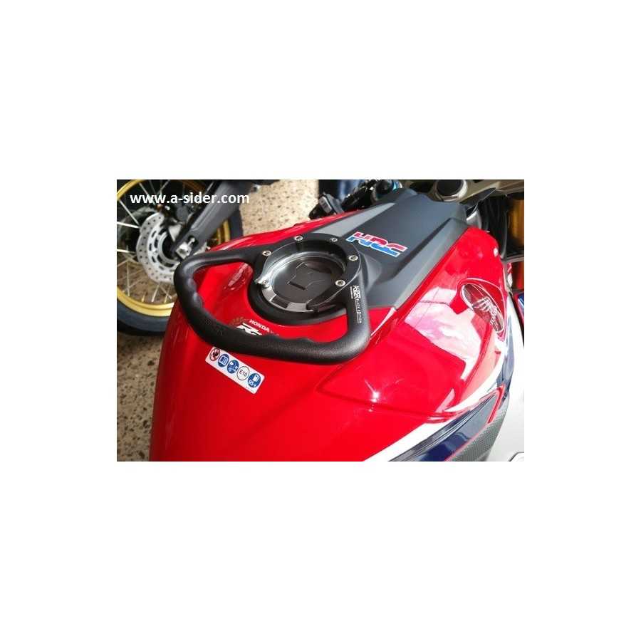 The product A-SIDER offers passengers of a sports bike an anchor / grip point that guarantees safety and comfort. Fixed to the fuel tank cap the A-SIDER is positioned within easy and comfortable reach of the passenger’s hands.